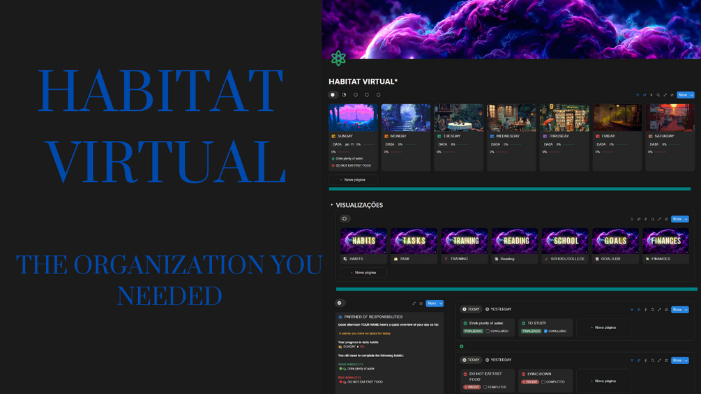 A simple and visual all-in-one system to organize tasks, track progress, plan long-term goals, manage workouts, and build better habits — all in one customizable template