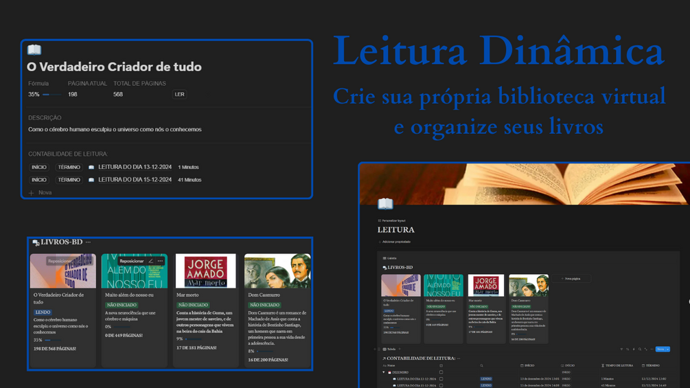 Nesse template pode organizar os livros de forma a visualizar as principais informações: